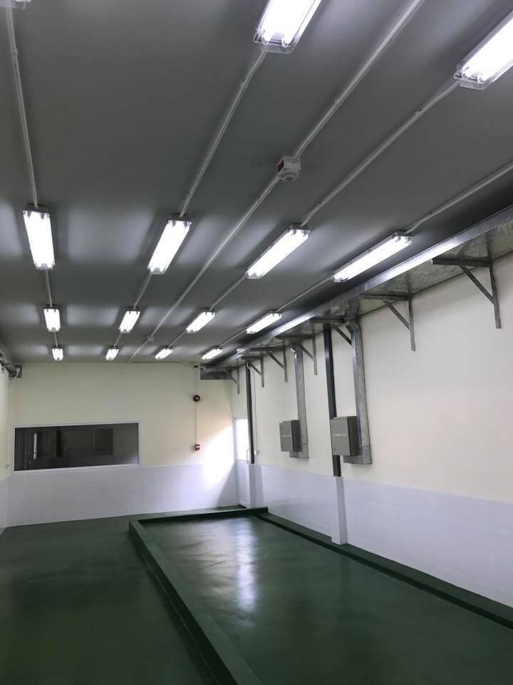 - งานติดตั้งระบบไฟฟ้าและแสงสว่างอาคารซักล้าง โรงงานสมุทรสาคร